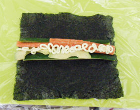 のりの裏には酢飯ととびこがすでにスタンバイ。