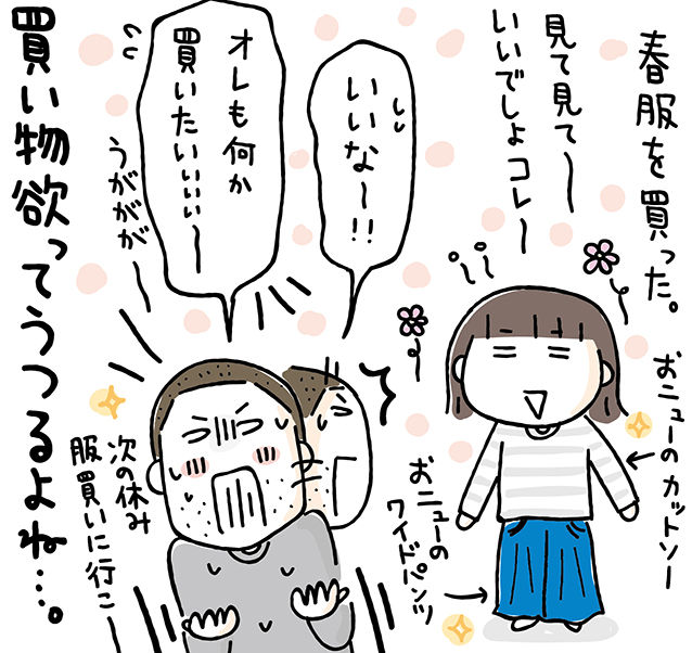 私からしたら夫のほうが定期的に服買ってる(古着大好きでリサイクルショップまわるのが趣味)と思うんだけどな〜。
