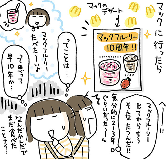マックフルーリー美味しいですよ〜私も10年たってることにびっくりです!!もっと最近なイメージでした