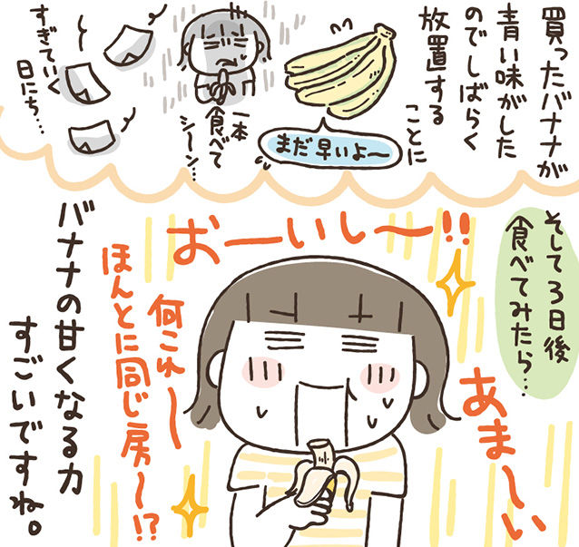 ちなみにバナナを甘くする方法をググってみると、お湯につけるとかいろいろあるみたいですね。