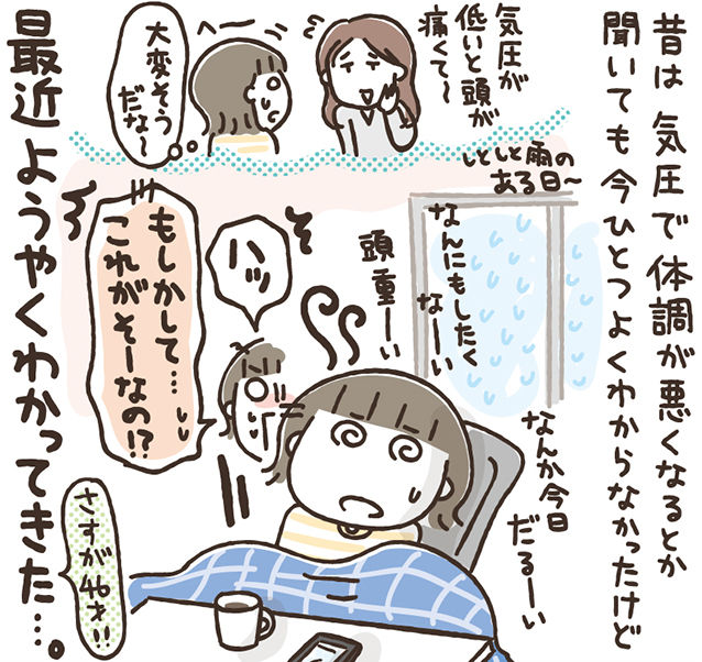 気圧で体調悪くなるとか聞いても「ふーん、そういうこともあるんだなぁ。大変そうだなぁ。」って、以前は思ってて。