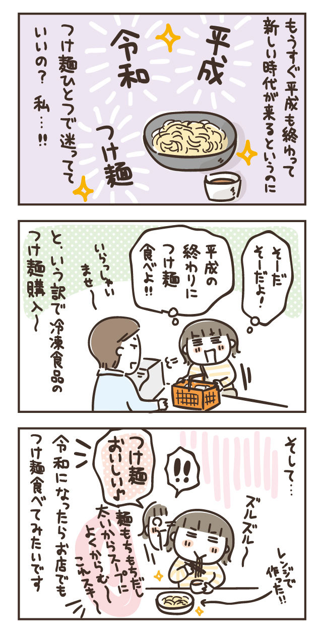 まさに今日で平成は終わるわけですが、新しく令和がスタートしたら、次はお店でつけ麺食べてみようと思います。