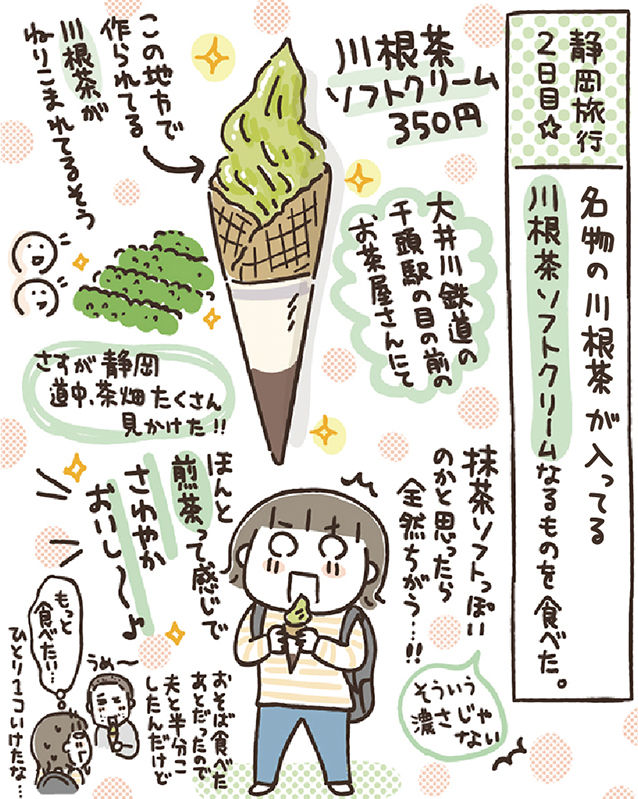 大井川鉄道の千頭駅の目の前のお茶屋さんで売ってた川根茶ソフトがまさにそれで、とってもおいしかった〜。