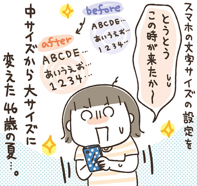 それに一度文字サイズ大きくしたらもう、元の中サイズには戻れないー。