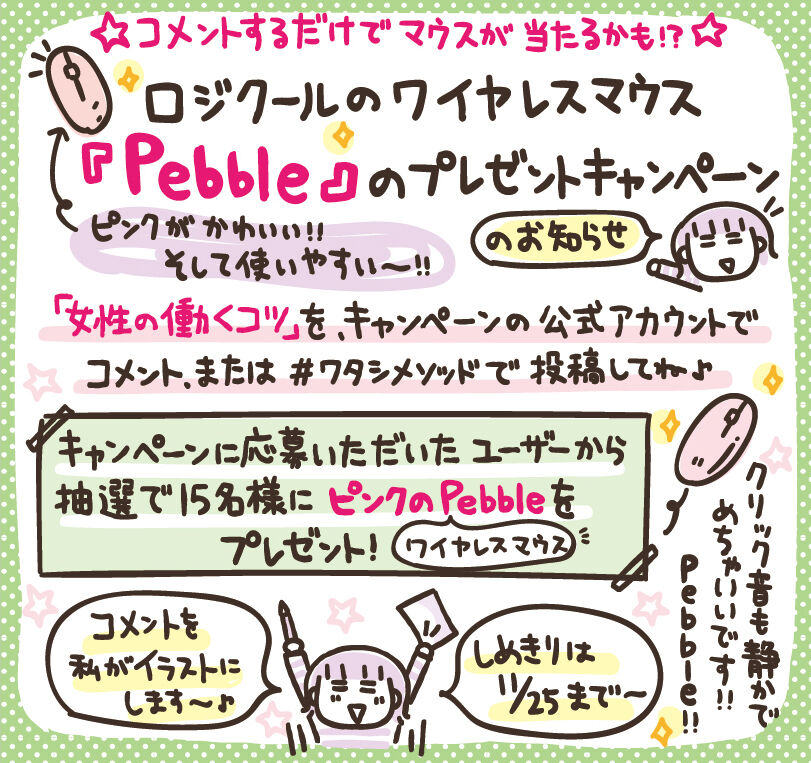 ロジクールのかわいいマウスが当たるキャンペーンもやってるので、ぜひ見てくださいねー。