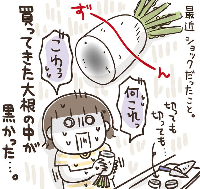 普通にスーパーで買ってきた大根を切ってみたら、中が黒い!