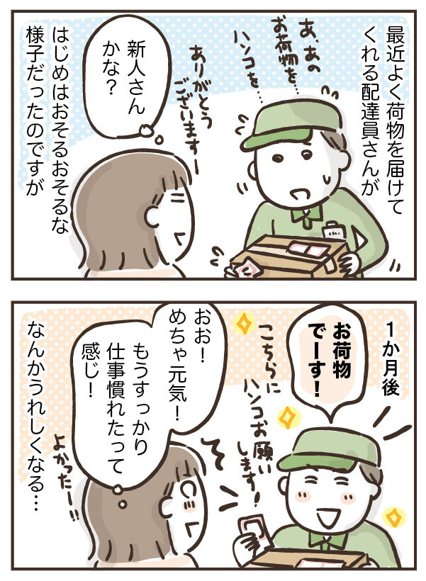 はじめのうちは、新人らしい配達員さんのおそるおそる感がこちらまで伝わってきてて。