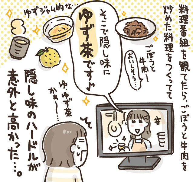 でもゆず茶ってなかなか必ず家にあるものでもないから、けっこうハードルが高い隠し味だなぁと。