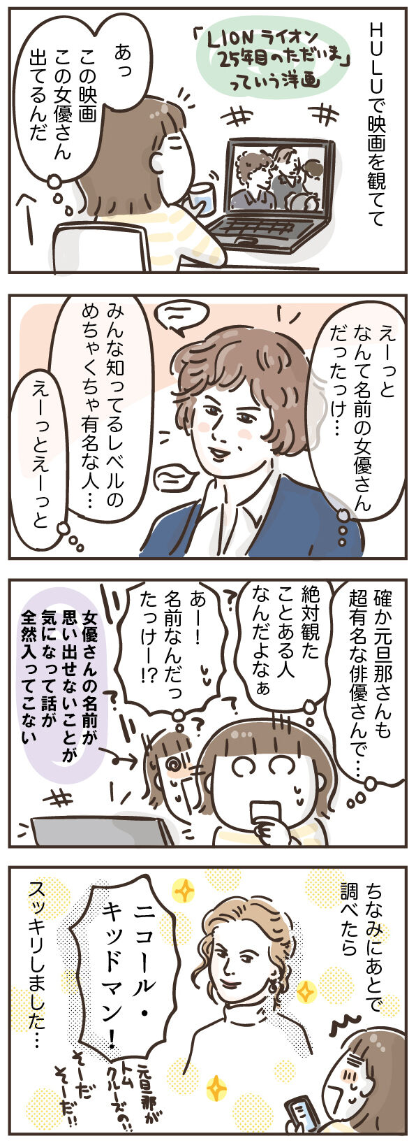 「確か元旦那さんもすごい有名な俳優さんで…」っていう、どうでもいい情報だけは思い出せるのにな。
