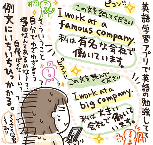 たとえ私が本当に有名な会社に勤めてたとしても、自分から「I work at a famous company.(私は有名な会社で働いています)」 なんて自慢っぽいから言わないよなー!とか思ったり。