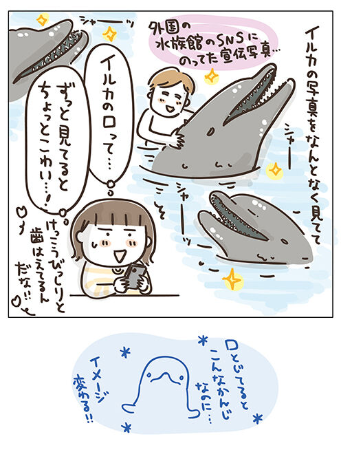 口閉じて歯とか見えないイルカには全然そういうの感じないのに、イメージって不思議だな〜。