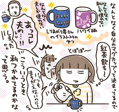 うちにあるマグカップは各々好きで買ったやつなので、なんとなく夫の、私の、って決まってて。