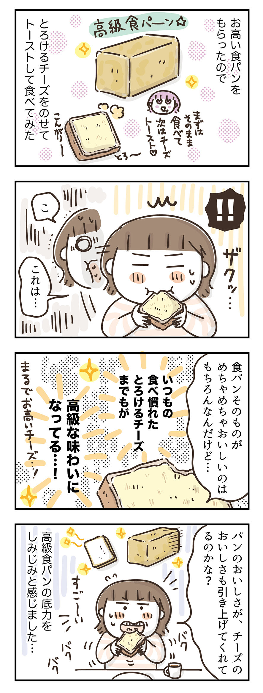 高級食パンのポテンシャルに引っ張られて、いつもの食べ慣れたとろけるチーズまでもがなんだか高級感のある味わいに…。