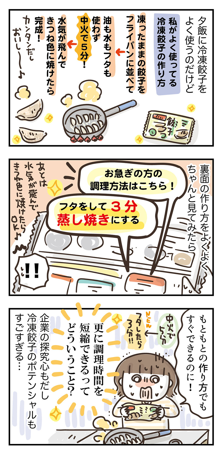 私は大阪王将の冷凍餃子が大好きでよく夕飯に使うんですけど、もう何回も作ってるので裏面の作り方とか見ずに感覚で作っちゃってて。