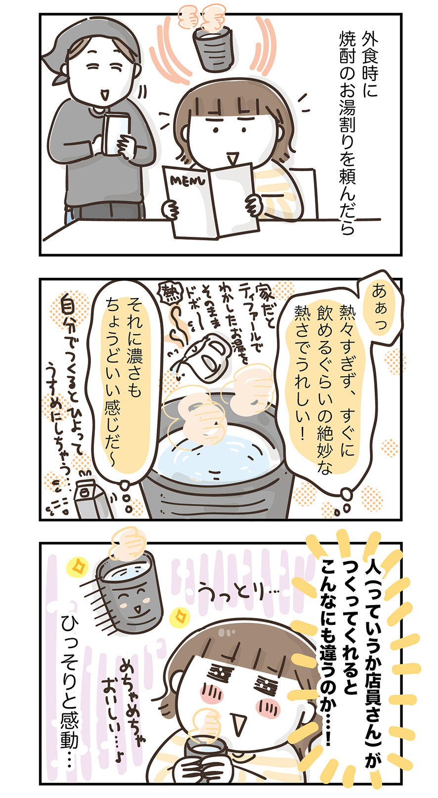 焼酎のお湯割りは冬場の晩酌で自分でつくって普段から飲んでるので、馴染みがあるってのもよかったんですよね。
