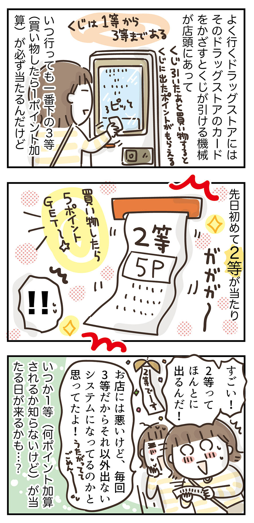 3等だと、そのあとお店で買い物したら1ポイントもらえるっていう感じで。
