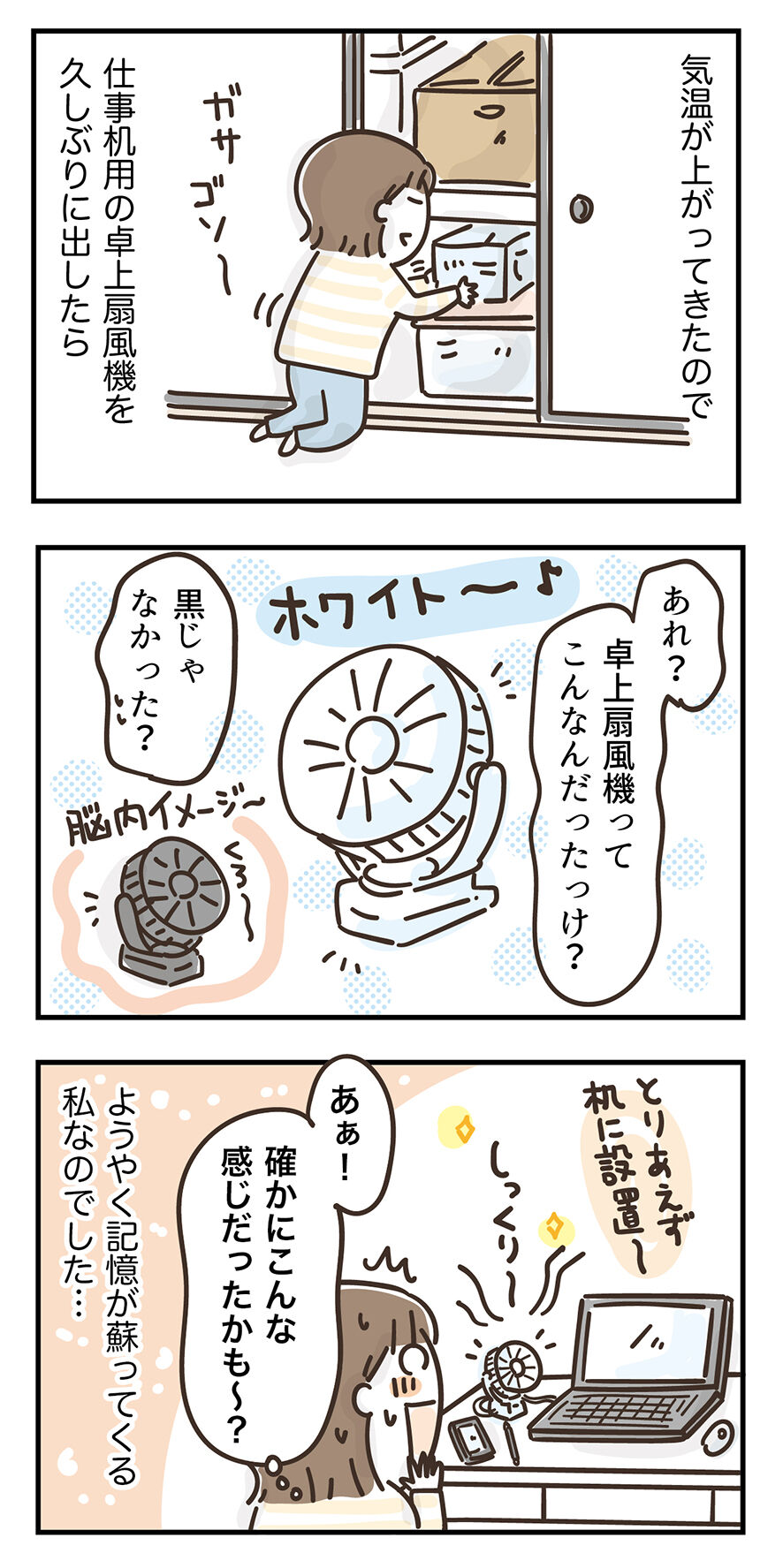 夏にずっと使ってた卓上の扇風機の色もちゃんと覚えてなくて…。