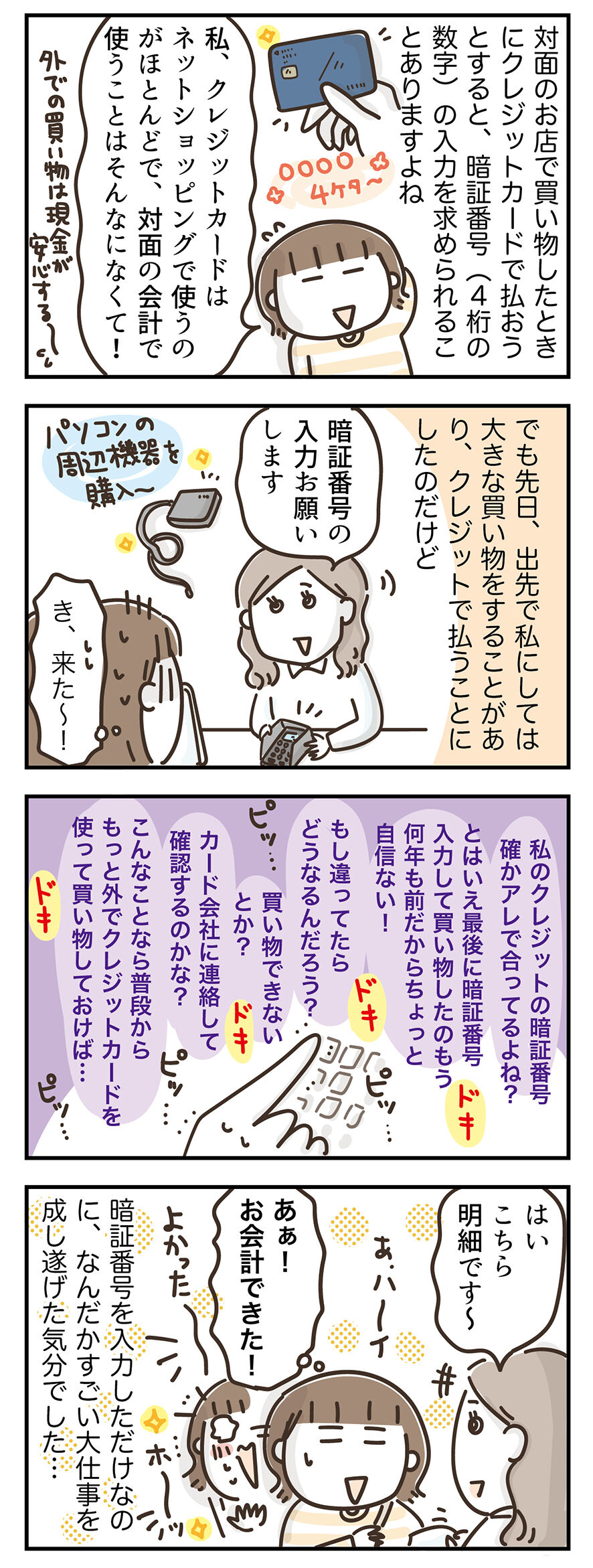 番号合っててよかったけれど、普段から外での買い物でもっとクレジットカード使っておけば…と思った出来事でした。