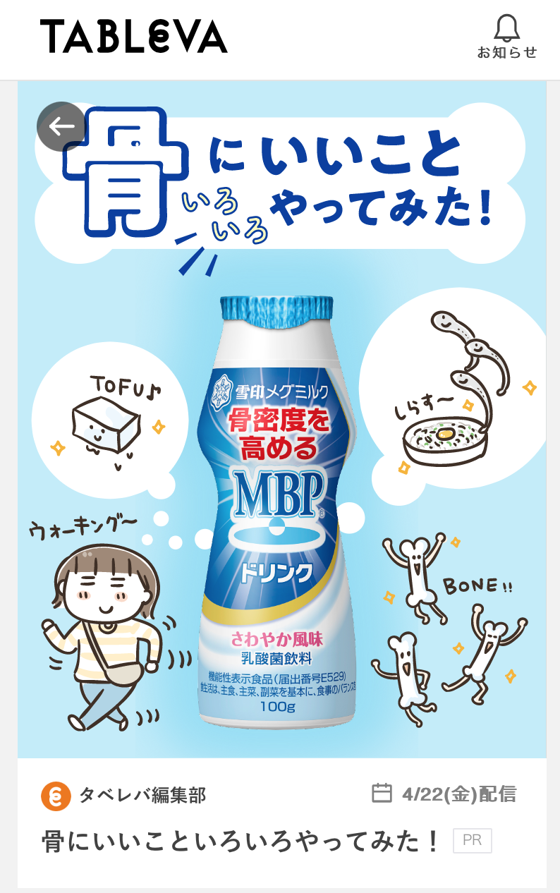 料理情報サイト「TABLEVA(タベレバ)」にて雪印メグミルク商品のPR記事漫画掲載されました。