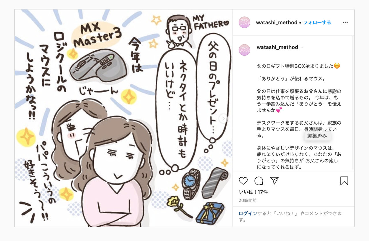 ロジクールのマウスのインスタグラム用PR漫画を担当させていただきました。