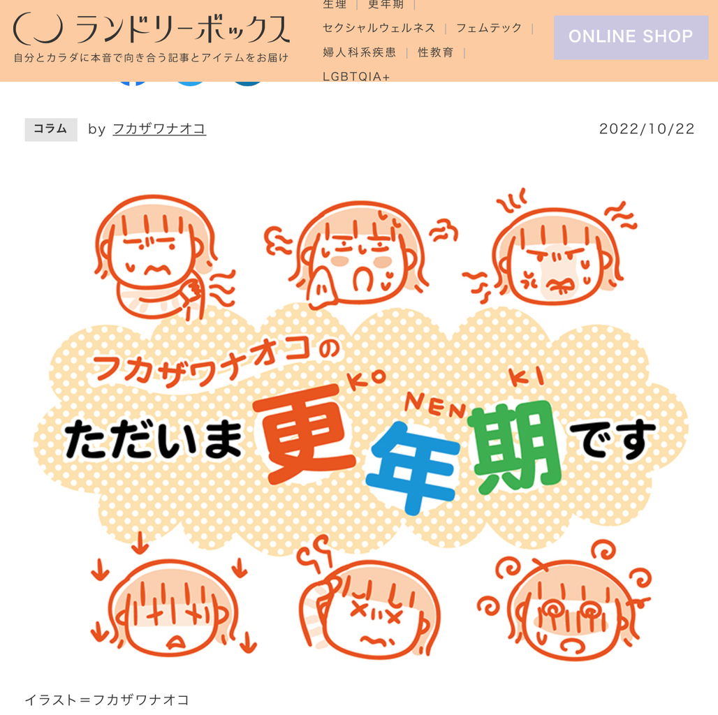 女性向けの情報発信サイト「ランドリーボックス」にて「ただいま更年期です」連載中です。
